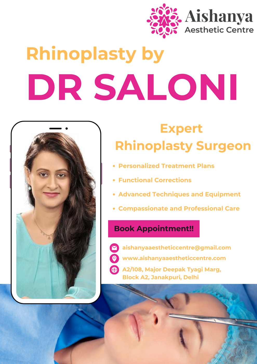 Nose Job in Delhi Choose a Nose Job in Delhi at Aishanya Aesthetic Centre because of Experienced Cosmetic Surgeons with extensive experience in rhinoplasty. Aishanya Aesthetic Centre in Delhi is equipped with cutting-edge technology for safe and precise procedures.