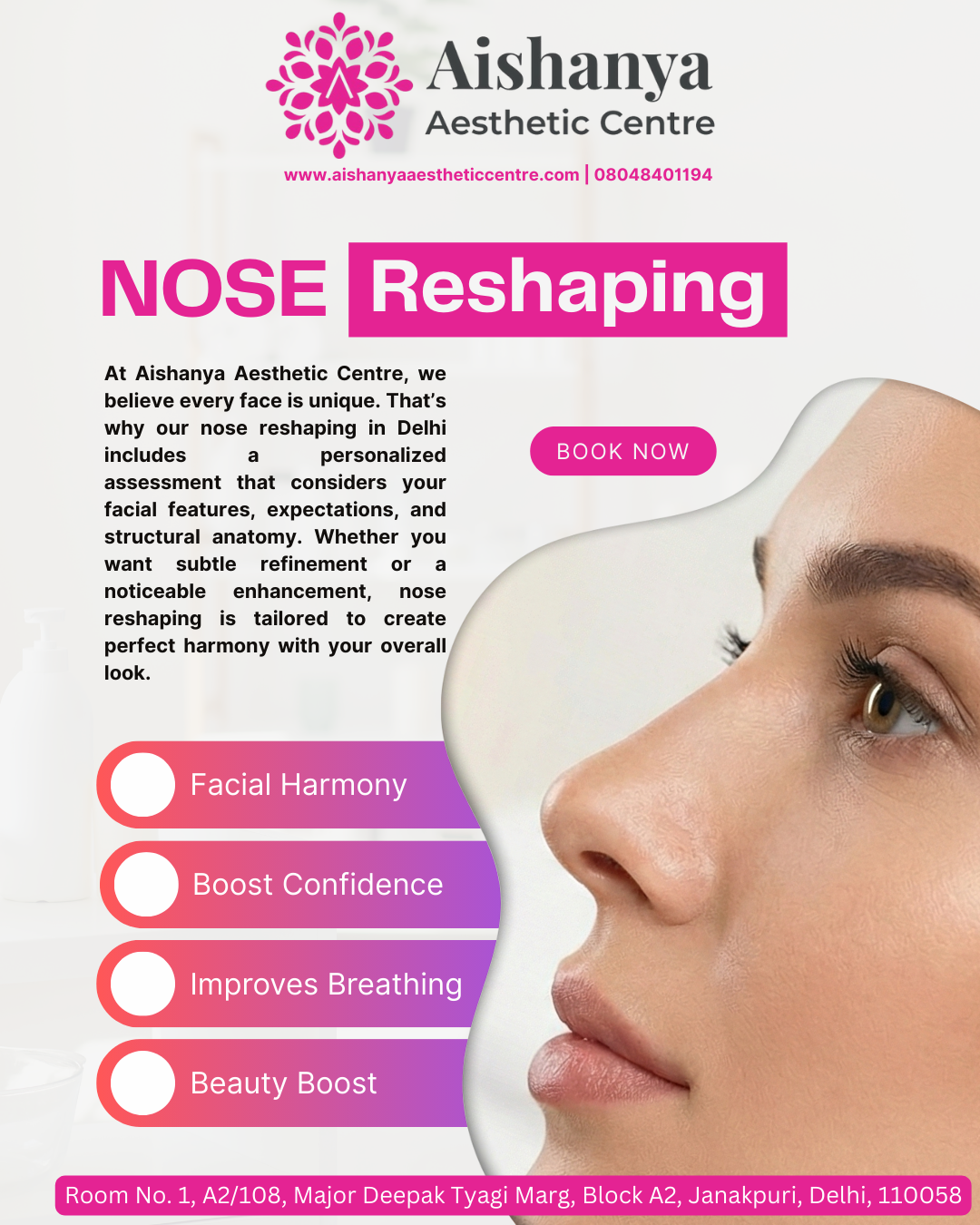 At Aishanya Aesthetic Centre, we believe every face is unique. That’s why our nose reshaping in Delhi includes a personalized assessment that considers your facial features, expectations, and structural anatomy. Whether you want subtle refinement or a noticeable enhancement, nose reshaping is tailored to create perfect harmony with your overall look. Book Appointment for Nose Reshaping in Delhi.