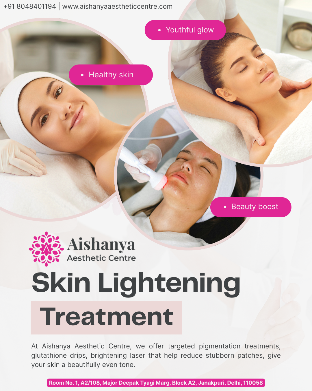 Melasma and hyperpigmentation require expert care—and our skin lightening treatment in Delhi is designed precisely for that. At Aishanya Aesthetic Centre, we offer targeted pigmentation treatments, glutathione drips, and brightening lasers that help reduce stubborn patches and give your skin a beautifully even tone. Book Appointment for: Skin Whitening Treatment in Delhi Rhinoplasty in Delhi Nose Reshaping in Delhi Dermal Fillers in Delhi Skin Lightening Treatment in Delhi